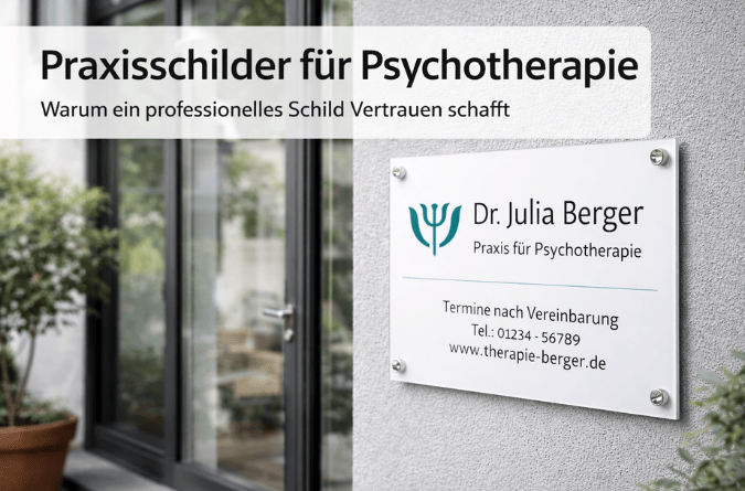 Ein professionelles Praxisschild ist für eine Psychotherapie-Praxis mehr als nur ein Orientierungspunkt – es vermittelt auf einen Blick Kompetenz und schafft Vertrauen bei potenziellen Klienten. Ein ansprechend gestaltetes Schild signalisiert, dass die Praxis Wert auf Sichtbarkeit legt und ihre Bedeutung für das Wohlbefinden ernst nimmt.